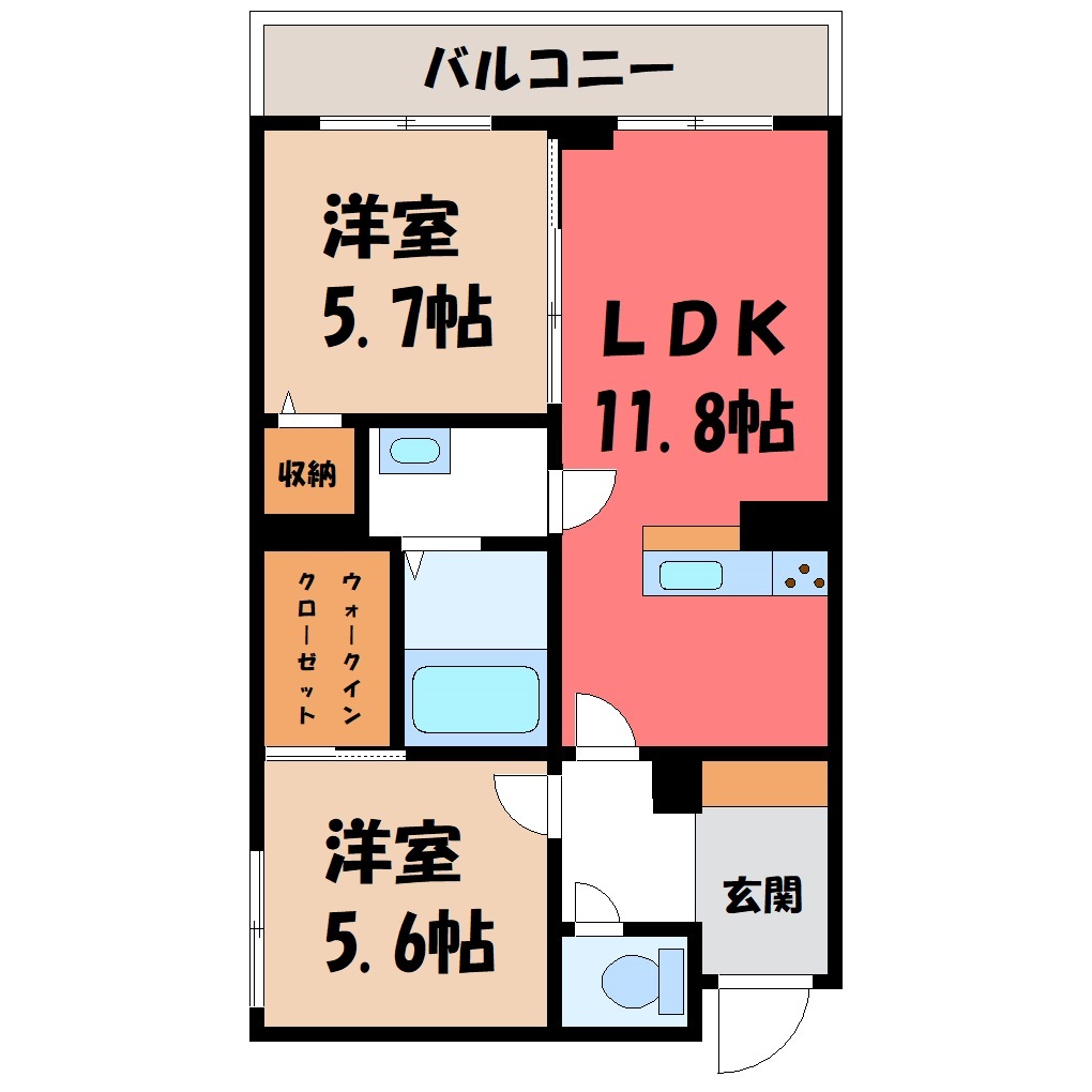 ☆宇都宮市錦☆2LDK☆12.4万円☆都市ガス仕様☆