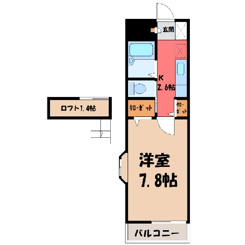 ロフト付き2階角部屋☆/バス・トイレ別の洋室/栃木街道アクセス良好/コンビニ徒歩2分