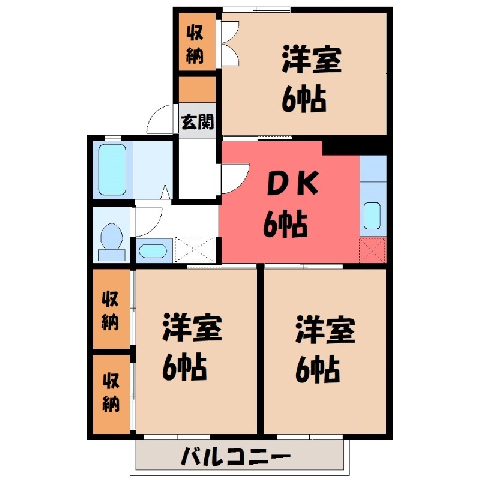 間取 / 専有面積 3DK / 53.46m2 間取り詳細 DK6/洋室6/洋室6/洋室6 築年月 1988年2月築