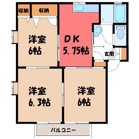 間取 / 専有面積 3DK / 54.81m2 間取り詳細 DK5.8/洋室6/洋室6.3/和室6 築年月 1997年7月築