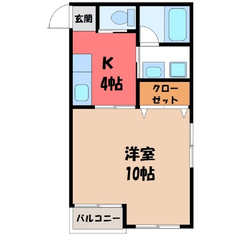 間取 / 専有面積 1K / 33.08m2 間取り詳細 K4/洋室10 築年月 2004年7月築