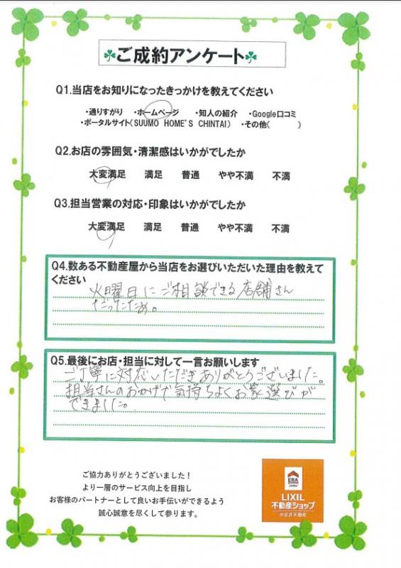 この度は数ある不動産会社の中から弊社をご利用いただきありがとうございました!