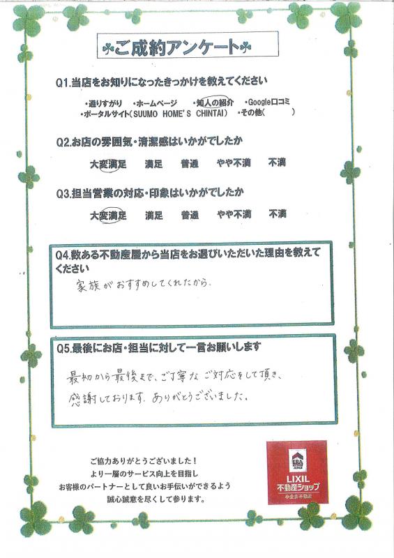 この度はご成約いただき、誠にありがとうございます。