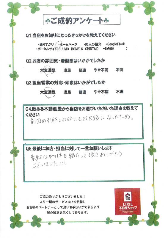 素敵な物件を紹介して頂きありがとうございました!!(宇都宮市 H様)