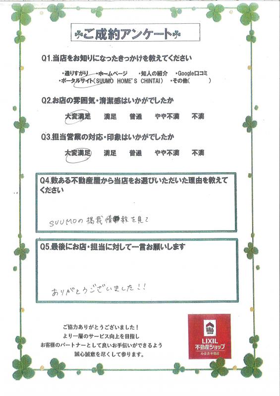 この度は弊社小金井不動産東店をご利用いただきありがとうございます。