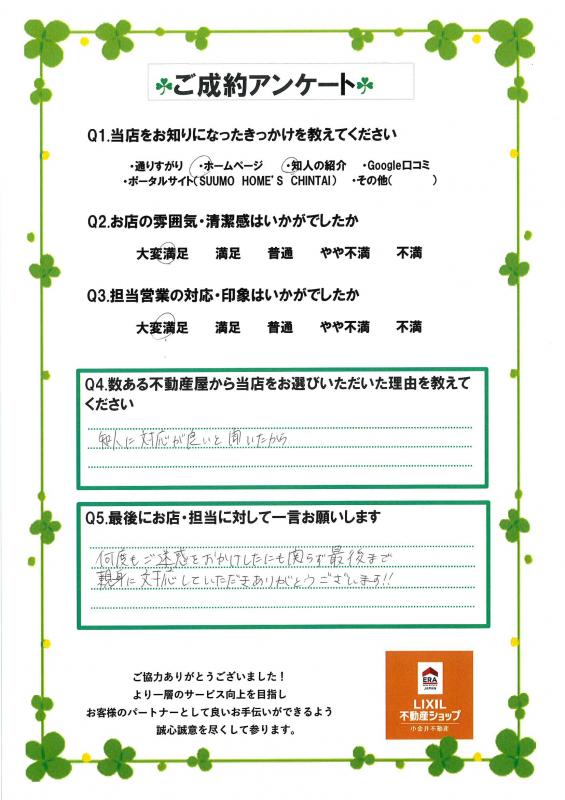 この度は小金井不動産西店をご利用いただき誠にありがとうございます!